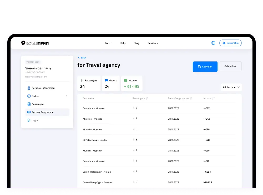 Earn up to 80 ₽ per passenger with flight bookings!
